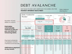 Whether you use the Snowball Method (paying off the smallest balances first) or the Avalanche Method (tackling the highest interest rates), this tracker automatically calculates payoff timelines and keeps you motivated with clear progress visuals.